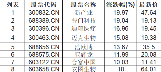体外诊断板块拉升,新产业(300832.CN)涨19.97%