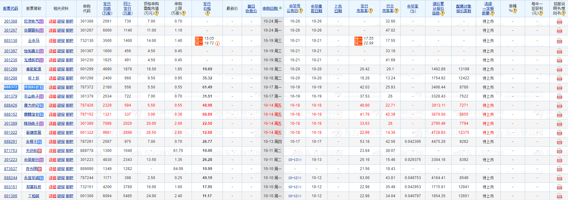 伟测科技10月13日晚间披露发行公告:本次公开发行股票数量为2180.27万股,发行后公司总共股本为8721.07万股。发行价格为61.49元/股;2022年10月17日进行网上申购。预计发行人募集资金总额约为13.41亿元。申购简称为伟测申购,申购代码为787372。