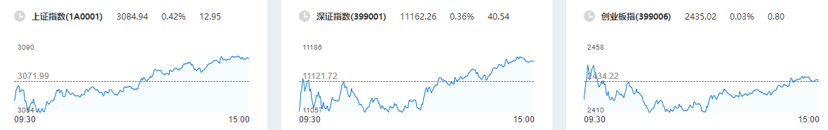 沪指报3084.94点,涨0.42%,成交额为3492亿元;深成指报11162.26点,涨0.36%,成交额为4581亿元;创指报2435.02点,涨0.03%,成交额为1605亿元。大盘午后震荡反弹,三大指数全线翻红,创业板指此前一度跌超1%。板块方面,教育、工业母机板块双双大涨,信创、数字经济概念股持续强势,此外,军工、医药、半导体等板块集体上行;下跌方面,燃气、煤炭、白酒板块表现相对低迷。总体来看,市场多空博弈激烈,个股呈普涨态势,两市近4000股飘红。