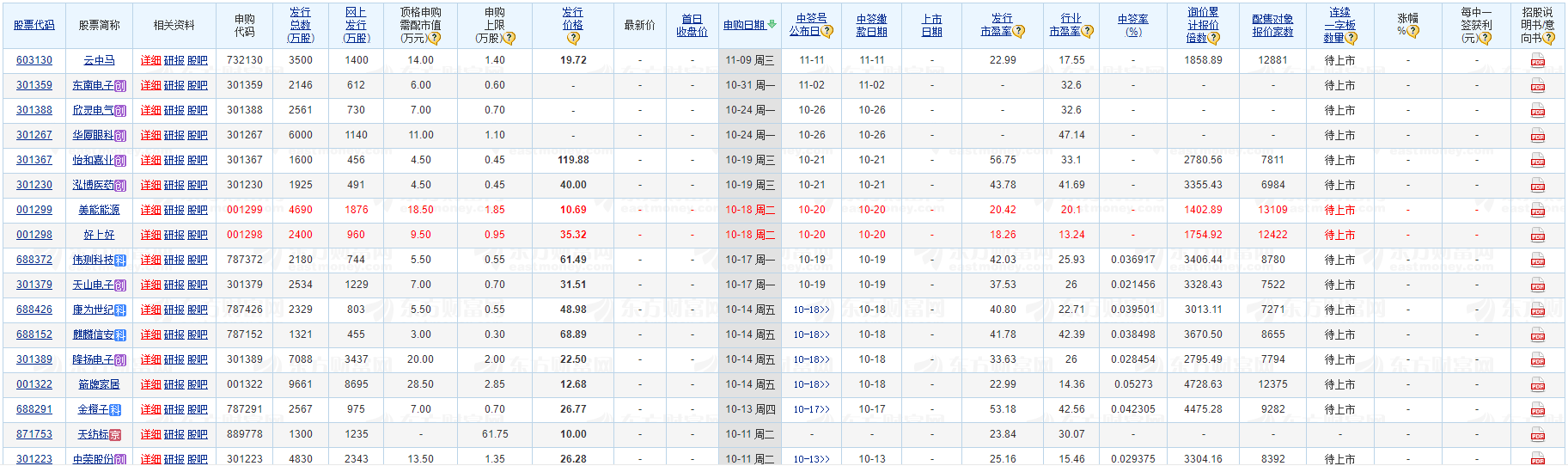 10月18日,美能能源(001299.SZ)开启申购,发行价格10.69元/股,申购上限为1.85万股,市盈20.42倍,属于深交所主板,西部证券为其独家保荐人。