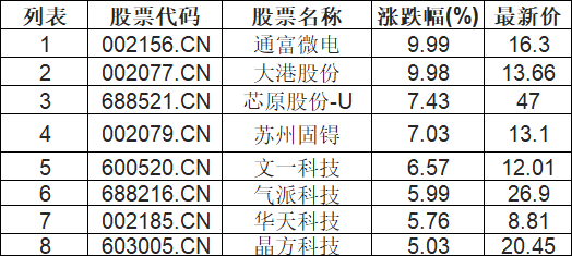 Chiplet概念板块拉升,通富微电(002156.CN)涨9.99%
