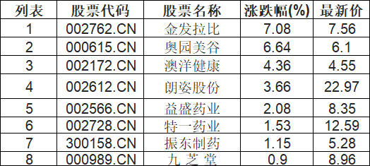 毛发医疗板块拉升,金发拉比(002762.CN)涨7.08%
