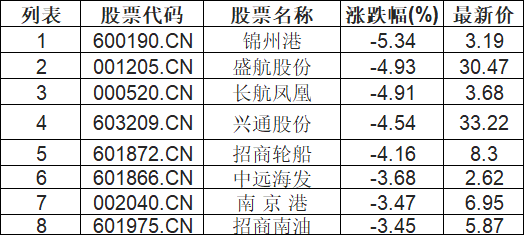 航运港口板块下挫,锦州港(600190.CN)跌5.34%