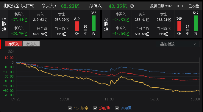 资金动向:北向资金全天净卖出62.23亿元