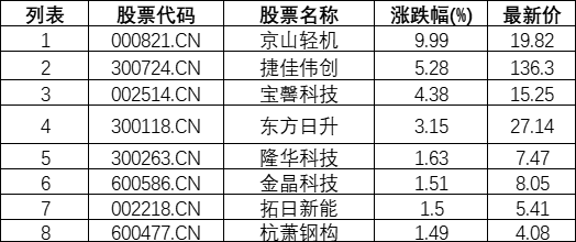 钙钛矿电池板块拉升,京山轻机(000821.CN)涨9.99%
