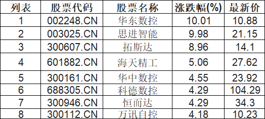 工业母机板块拉升,华东数控(002248.CN)涨10.01%