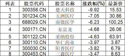 注射器概念板块下挫,楚天科技(300358.CN)跌9.92%