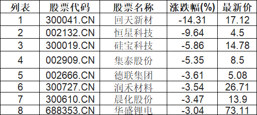 有机硅板块下挫,回天新材(300041.CN)跌14.31%