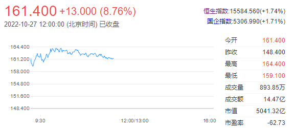 今日走势分析:隔夜,京东(JD.US)收涨8.7%。早盘,京东集团-SW(09618)大涨9%领跑蓝筹股。天风认为,今年双十一京东GMV有望实现进一步突破。中泰预计,2022Q3,公司营收同比增长10.8%,Non-Gaap净利润率达到2.8%。截至发稿,京东集团涨9.16%,报162港元,成交额14.02亿港元。
