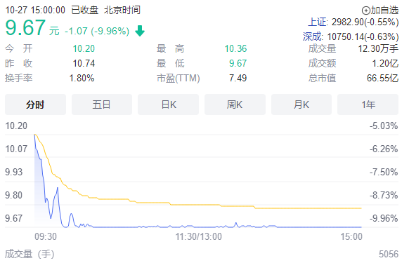 重要资讯:沪深交易所2022年10月27日公布的交易公开信息显示,浙商中拓因成为当日跌幅偏离值达7%的证券上榜。浙商中拓当日收报9.67元,涨跌幅-9.96%,偏离值-9.36%,换手率1.80%,成交额1.2亿元。