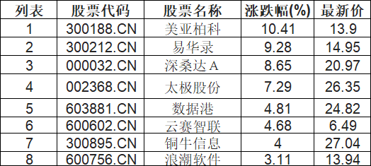 国资云概念板块高开,美亚柏科(300188.CN)涨10.41%