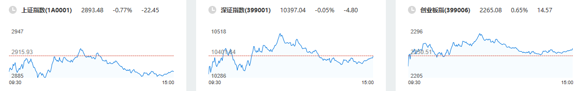 至10月31日收盘,上证综指跌0.77%,报2893.48点;科创50指数涨1.67%,报1010.33点;深证成指跌0.05%,报10397.04点;创业板指涨0.65%,报2265.08点。
