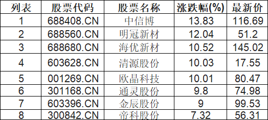 光伏设备板块拉升,中信博(688408.CN)涨13.83%