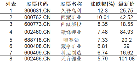 盐湖提锂板块拉升,久吾高科(300631.CN)涨12.3%