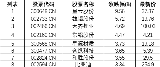 刀片电池板块拉升,星云股份(300648.CN)涨9.56%