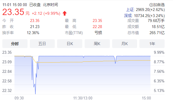 一字封板。11月1日开盘,珠江股份便被200万手的巨量封单推上涨停,最终全天成交1821万元,封牢涨停板。