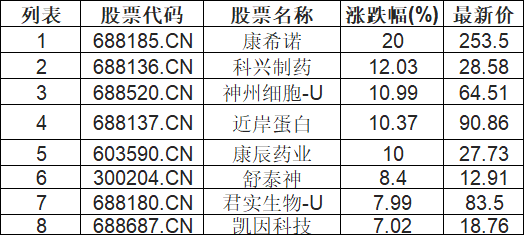 生物制品板块拉升,康希诺(688185.CN)涨20.0%