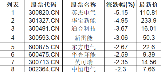 电源设备板块下挫,英杰电气(300820.CN)跌5.15%