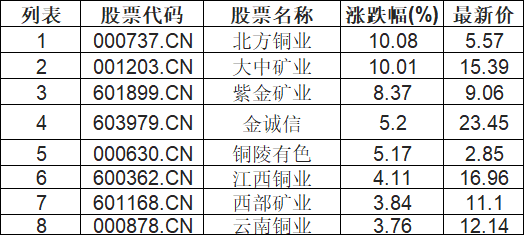 基本金属板块高开,北方铜业(000737.CN)涨10.08%
