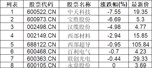超导概念板块下挫,中天科技(600522.CN)跌7.55%