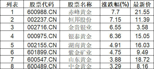 贵金属板块高开,赤峰黄金(600988.CN)涨7.7%