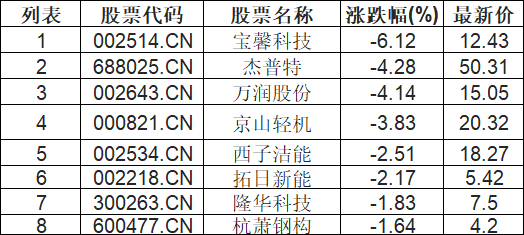 钙钛矿电池板块下挫,宝馨科技(002514.CN)跌6.12%