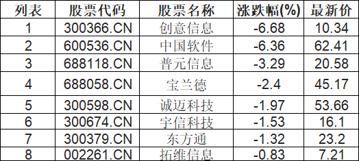 华为欧拉板块下挫,创意信息(300366.CN)跌6.68%