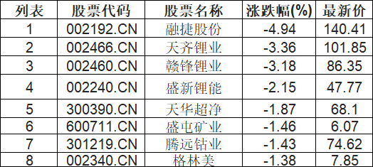 能源金属板块下挫,融捷股份(002192.CN)跌4.94%