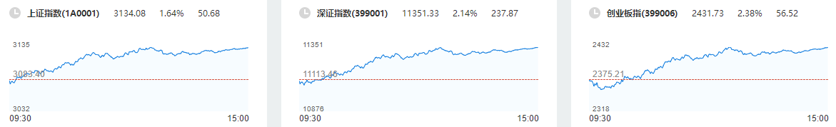 大盘低开震荡走高,创业板指领涨,沪指重新站上3100点。盘面上,半导体板块全天强势,板块内个股掀涨停潮,闻泰科技、韦尔股份、兆易创新等超10股涨停。工业母机概念股大涨,海天精工、华东数控、宝馨科技涨停。券商股盘中走强,湘财股份3连板,财达证券、光大证券涨停。此外中药、信创、旅游、房地产等多个板块盘中均有所活跃,市场热点呈现快速轮动特征。截至收盘,沪指涨1.64%,深成指涨2.14%,创业板指涨2.38%。北向资金全天净买入81.54亿元,其中沪股通净买入33.95亿元,深股通净买入47.6亿元。