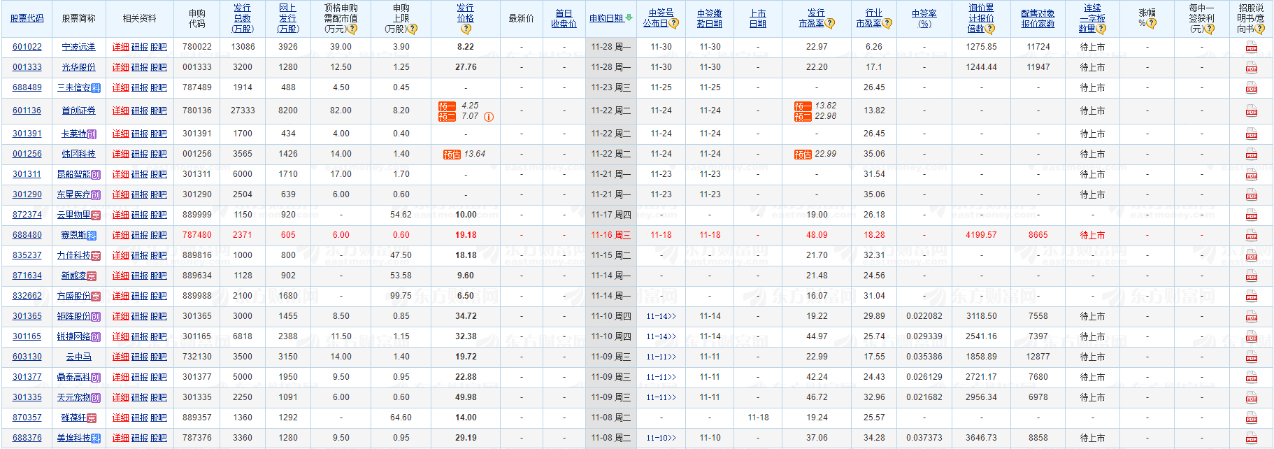 11月16日,赛恩斯(688480.SH)开启申购,发行价格19.18元/股,申购上限为0.6万股,市盈率48.09倍,属于上交所科创板,申万宏源证券为其独家保荐人。