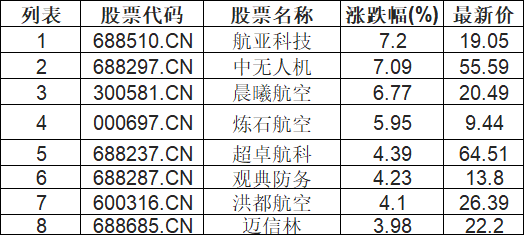航天航空板块拉升,航亚科技(688510.CN)涨7.2%