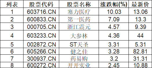 医药商业板块拉升,塞力医疗(603716.CN)涨10.03%