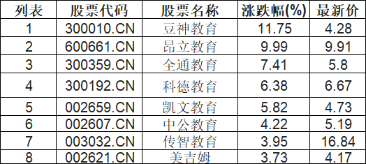 教育板块拉升,豆神教育(300010.CN)涨11.75%