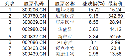 体外诊断板块高开,理邦仪器(300206.CN)涨15.72%