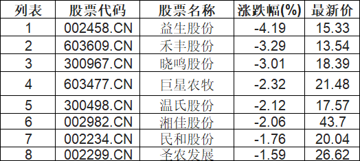 鸡肉概念板块下挫,益生股份(002458.CN)跌4.19%