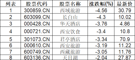 旅游酒店板块下挫,西域旅游(300859.CN)跌4.56%