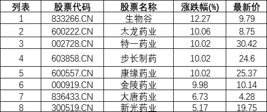 中药板块拉升,生物谷(833266.CN)涨12.27%