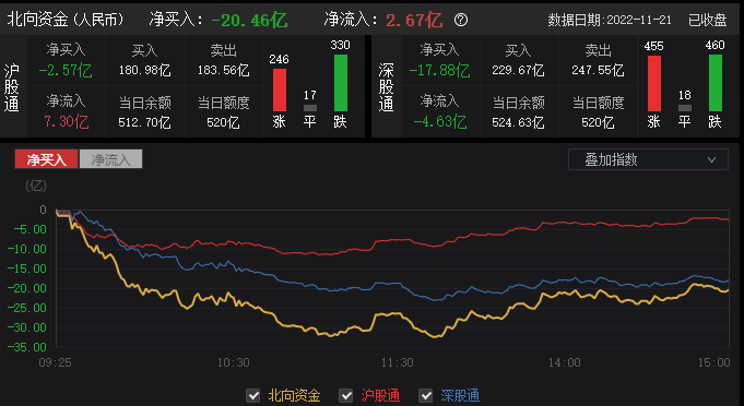 资金动向:北向资金合计净卖出20.46亿元