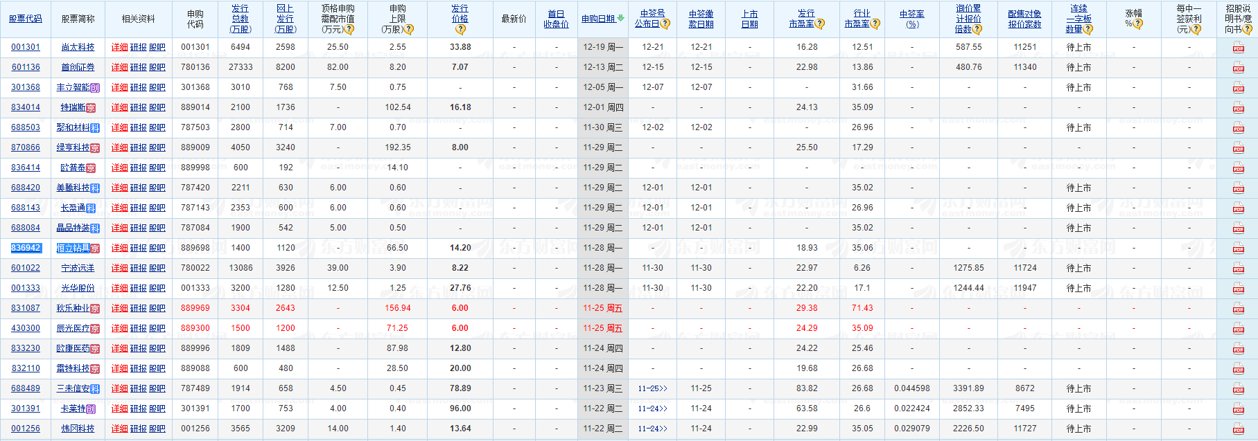今日新股要闻