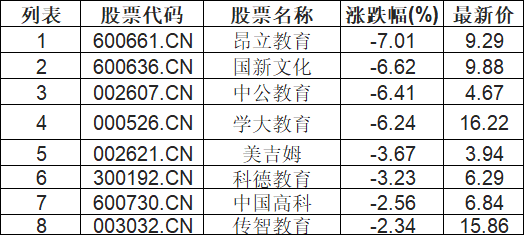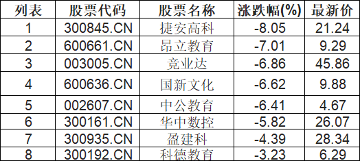 职业教育板块下挫,捷安高科(300845.CN)跌8.05%