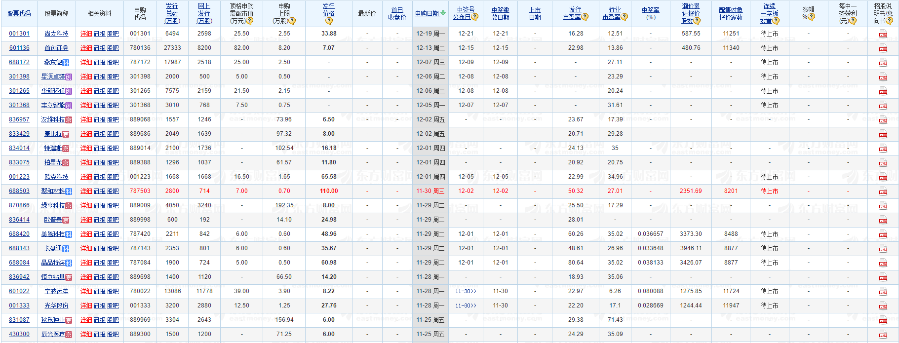 明日新股申购一览