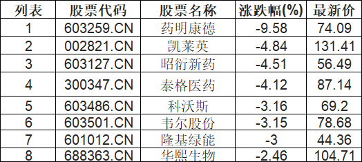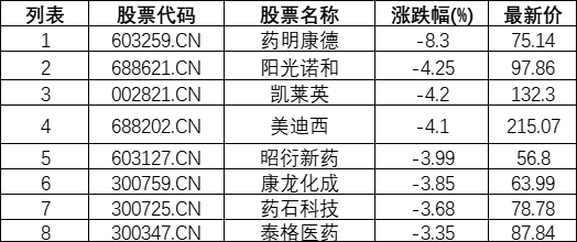 CRO板块下挫,药明康德(603259.CN)跌8.3%