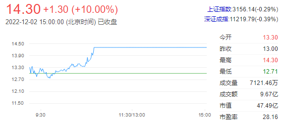重要资讯:沪深交易所2022年12月02日公布的交易公开信息显示,丰原药业因成为当日涨幅偏离值达7%的证券上榜。丰原药业当日收报14.30元,涨跌幅10.00%,偏离值9.98%,换手率22.83%,成交额9.67亿元。