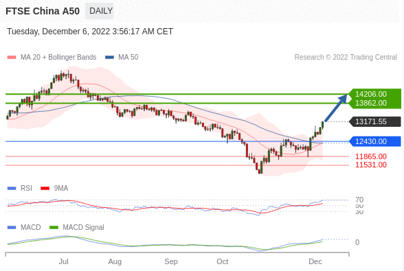 备选策略: 如跌破 12430 ,FTSE China A50 index 目标方向定在 11865 和 11531 。