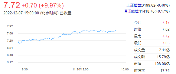 沪深交易所2022年12月07日公布的交易公开信息显示,仁和药业因成为当日涨幅偏离值达7%的证券上榜。仁和药业当日收报7.72元,涨跌幅9.97%,偏离值9.85%,换手率15.74%,成交额15.79亿元。