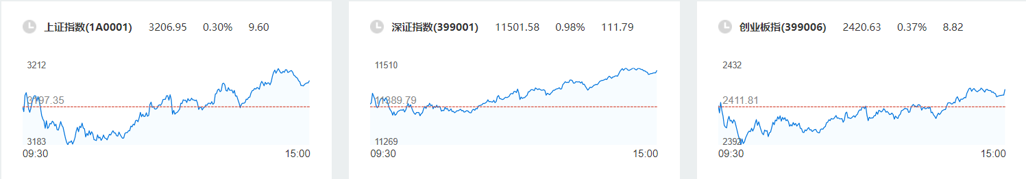 12月9日消息,大盘午后集体回暖,沪指重回3200点,深成指一度涨超1%。板块方面,抗原检测板块全天大涨,厨卫电器板块震荡走强,白酒、钢铁等权重板块午后拉升;旅游板块陷入回调,教育板块持续调整,信创板块走弱。总体来看,两市个股跌多涨少,超2900只个股飘绿,今日成交破万亿元。截至收盘,沪指报3206.95点,涨0.30%;深成指报11501.58点,涨0.98%;创指报2420.63点,涨0.37%。