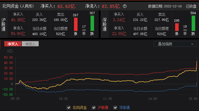 资金动向:北上资金今日净买入43.62亿元