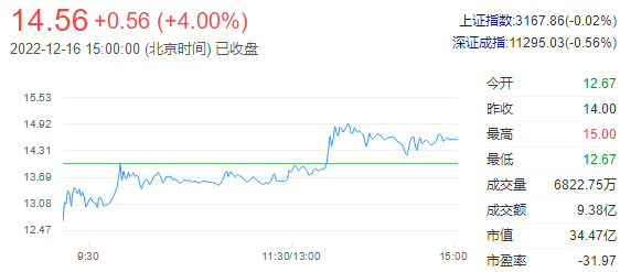 重要资讯:沪深交易所2022年12月16日公布的交易公开信息显示,西安旅游因成为当日价格振幅达到15%的证券上榜。西安旅游当日收报14.56元,涨跌幅4.00%,振幅18.39%,换手率28.98%,成交额9.38亿元。