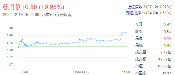 重要资讯:沪深交易所2022年12月19日公布的交易公开信息显示,深振业A因成为当日涨幅偏离值达7%的证券上榜。深振业A当日收报6.19元,涨跌幅9.95%,偏离值11.78%,换手率15.69%,成交额12.39亿元。