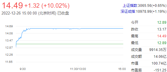 重要资讯:沪深交易所2022年12月26日公布的交易公开信息显示,美利云因成为当日涨幅偏离值达7%的证券上榜。美利云当日收报14.49元,涨跌幅10.02%,偏离值8.67%,换手率14.26%,成交额14.06亿元。